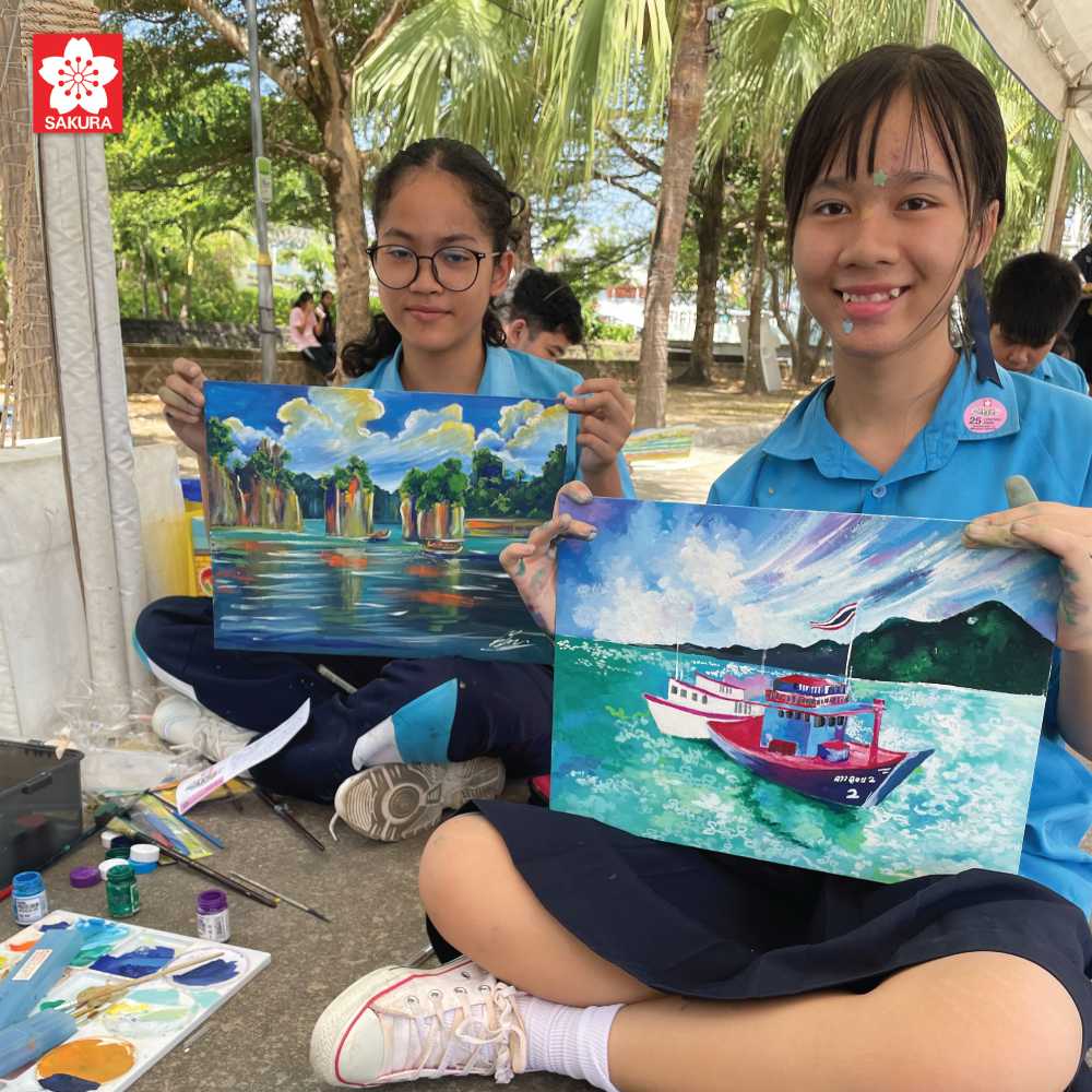 ภูเก็ตสดใสมาก! งานนี้ น้องๆประถมใช้สีชอล์คซากุระ พี่ๆมัธยมใช้สีโปสเตอร์และสีอะคริลิคซากุระในการแข่งขัน