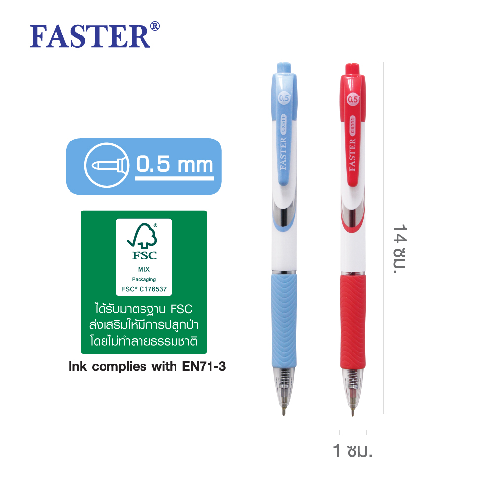 Highly convenient retractable (push button mechanic) ball point pen. Produces a smooth writing with a consistent and sharp-looking 0.5 mm line. With soft rubber cushion for a comfortable grip. Ink comes in red or blue.